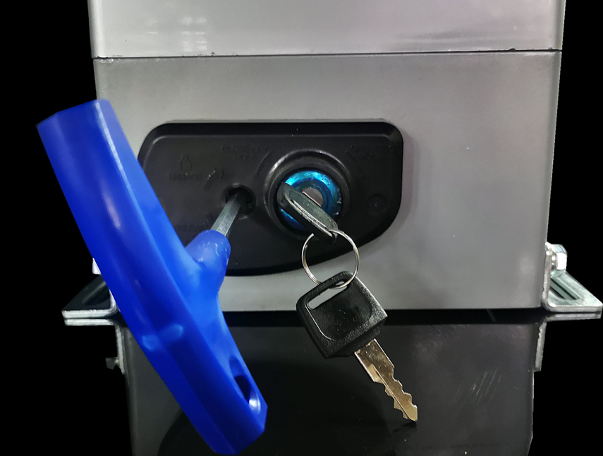 2、停電應急->電機側旁留有鑰匙可打開離合開關,手動開啟門。